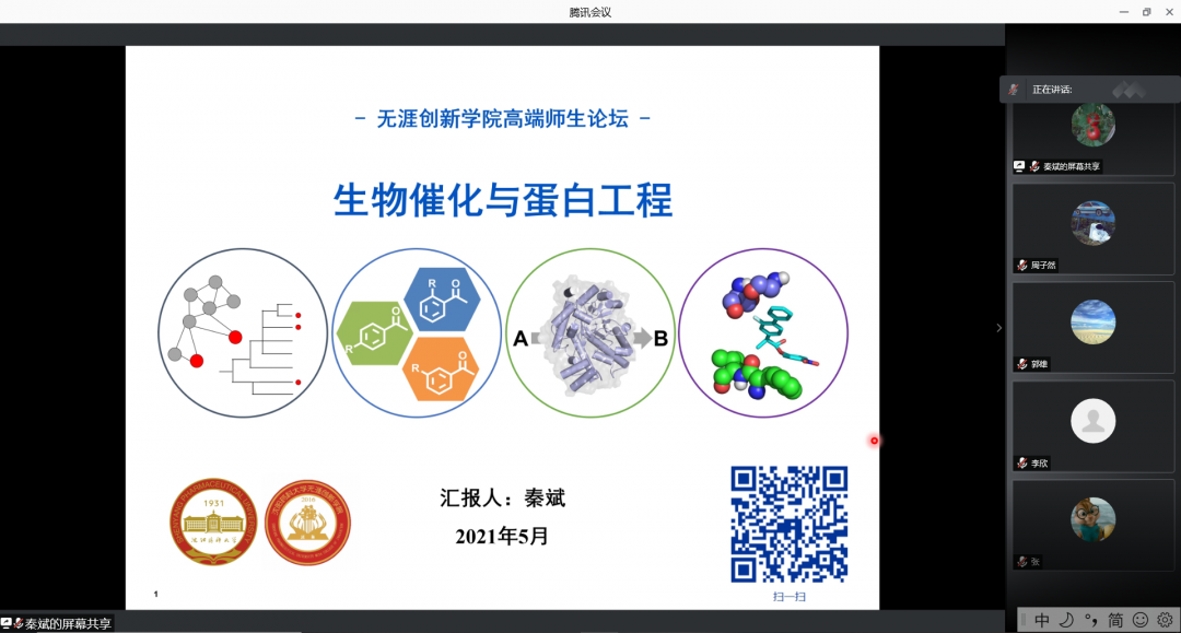 本期师生高端学术论坛邀请了秦斌教授、博士后郭雄、博士朱莹莹作为主讲嘉宾。首先,秦斌教授做了题为《生物催化与蛋白质工程》的学术分享。秦斌教授的学术分享主要包括生物催化与蛋白质工程的发展历程和研究成果两部分内容。秦斌教授首先介绍了生物催化发展历程以及蛋白质工程在化学领域的应用,之后介绍了其课题组在该领域的研究发现。秦斌教授进行了对酮还原酶的蛋白质工程改造、短链脱氢酶立体选择性的精准调控以及香芹醇及二氢香芹醇的立体多向性生物催化合成、利用蛋白质工程改造中间体和精准构筑衍生物等科研项目的研究,通过生物催化与蛋白质工程的方法优化有机物结构,提高其活性。