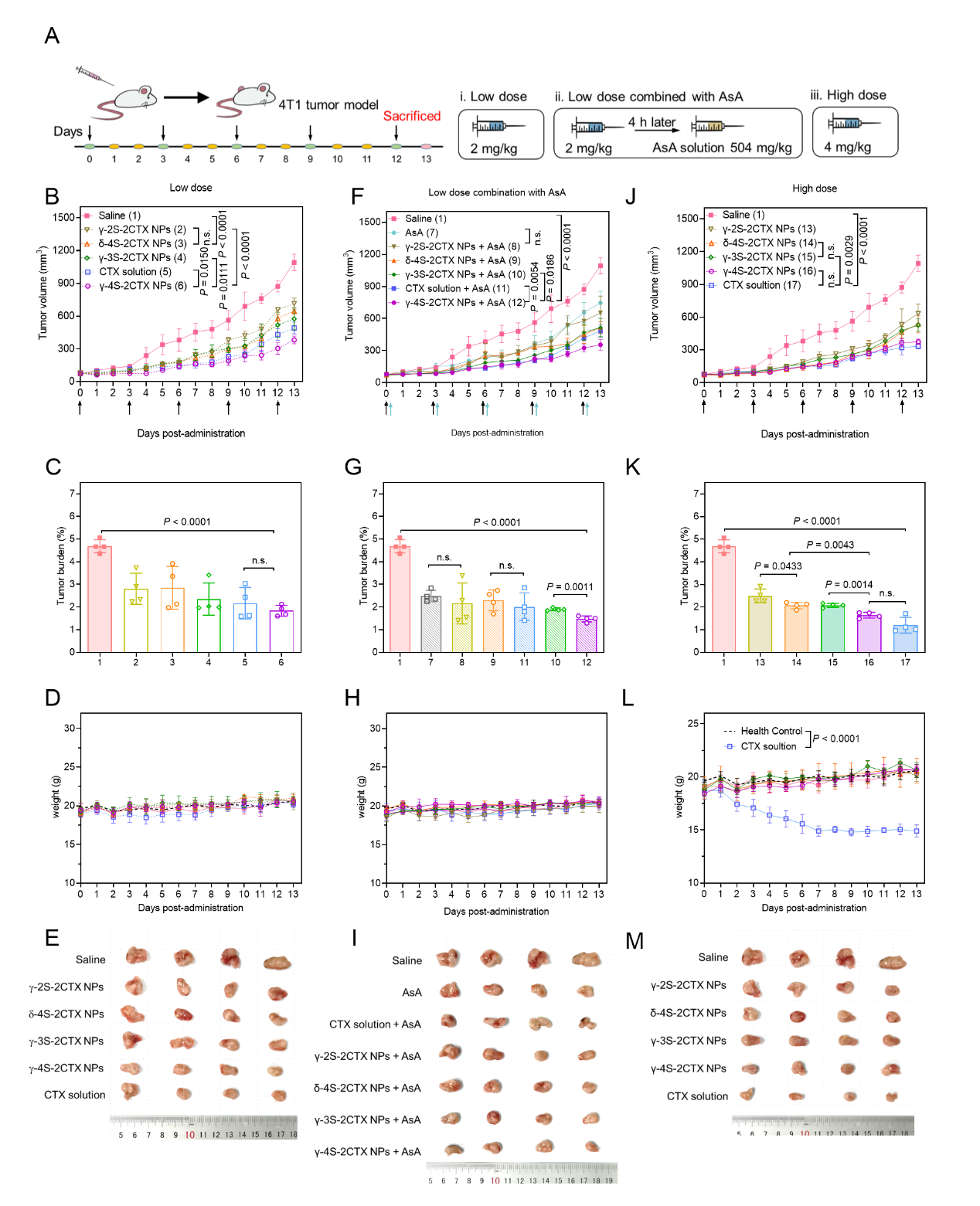 7. 四硫键桥连前药自组装纳米粒单独及联合外源还原剂的体内抗肿瘤作用(乳腺癌模型:4T1