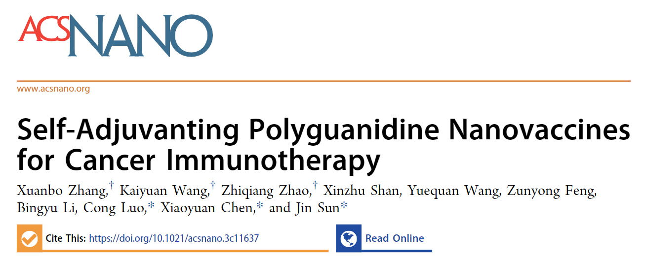 2024226,beat365在线唯一官网孙进/罗聪团队在美国化学会旗下期刊ACS Nano》(IF=17.3)发表题为Self-Adjuvanting Polyguanidine Nanovaccines for Cancer Immunotherapybeat365beat365在线唯一官网孙进教授和罗聪教授新加坡国立大学陈小元教授为本文通讯作者,博士毕业生张轩博,王开元及2023级博士生赵志强为本文共同第一作者,beat365在线唯一官网为一通讯单位