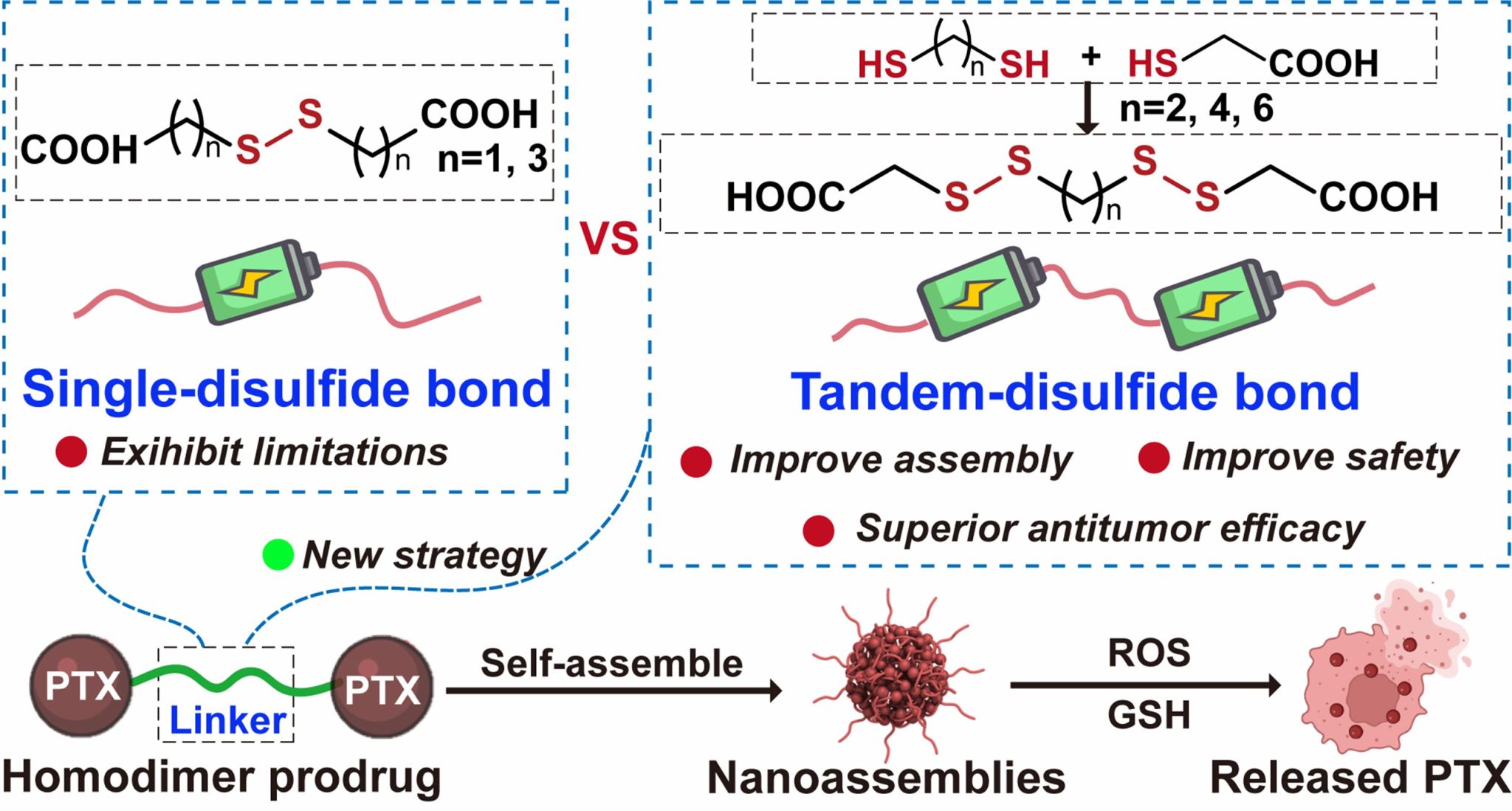 近日,beat365药剂学科孙进科研团队在化学领域国际权威期刊J. Am. Chem. Soc.(IF:14.4)发表了碳原子间隔的“串联型”双二硫键桥连同二聚体前药纳米组装体的最新研究进展,题目为:”Carbon-spaced tandem-disulfide bond bridge design addresses limitations of homodimer prodrug nanoassemblies: Enhancing both stability and activatability”。