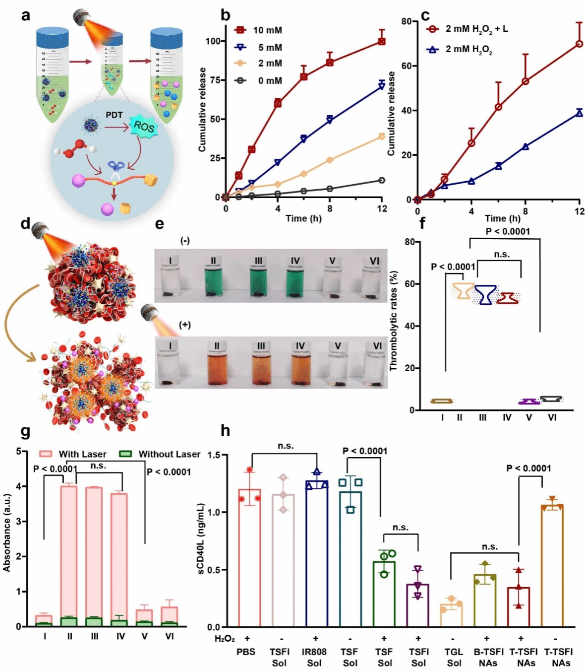 图4. 纳米组装体的体外药物释放与协同溶栓