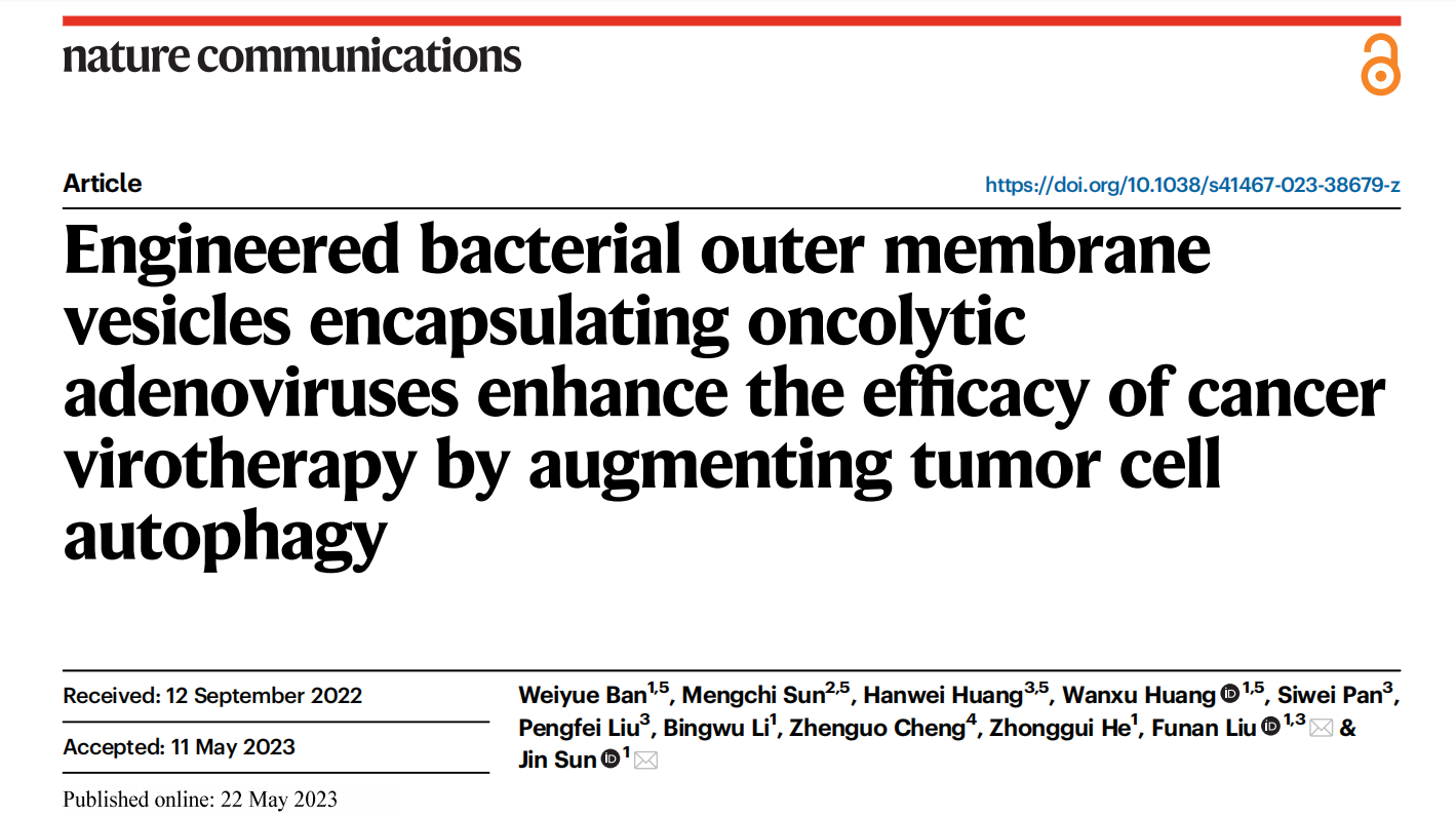 beat365孙进教授-孙孟驰副教授团队《Nat. Commun》:基于工程化细菌外膜囊泡的溶瘤病毒静脉递送系统的构建及免疫增效的机制研究