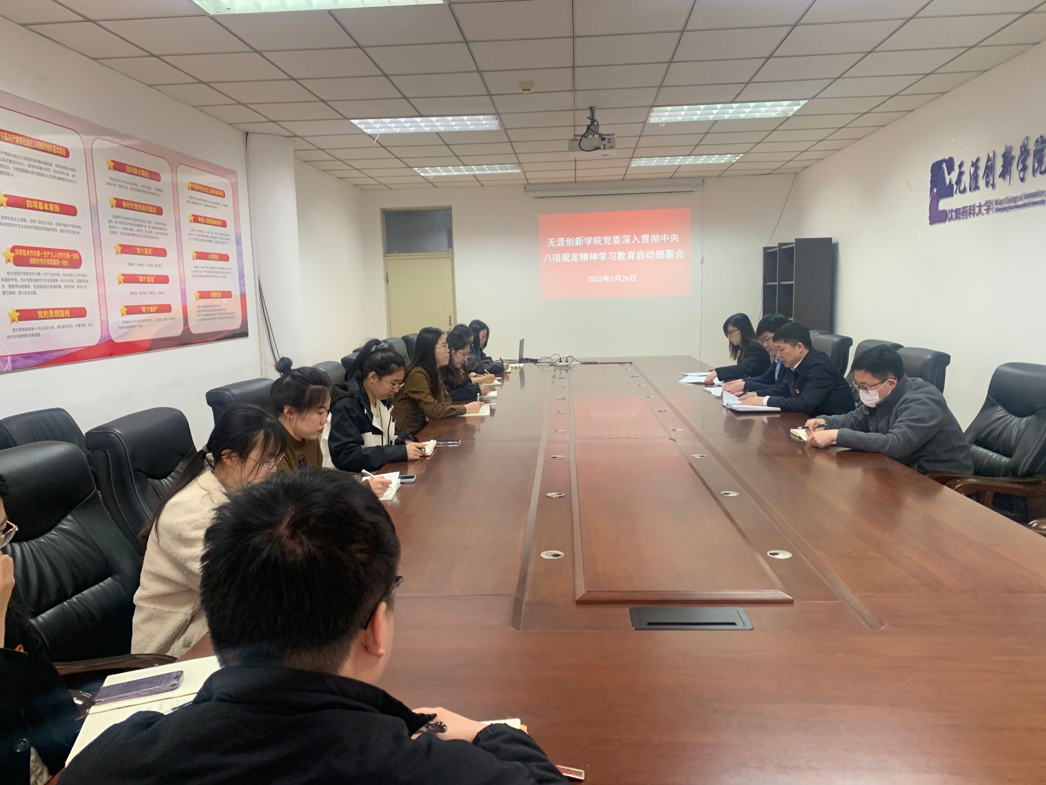 3月26日上午,beat365在线唯一官网召开党委(扩大)会议,启动部署深入贯彻中央八项规定精神学习教育。学院党委书记张林芝主持会议,学院领导班子成员、各党支部书记和辅导员参加会议。