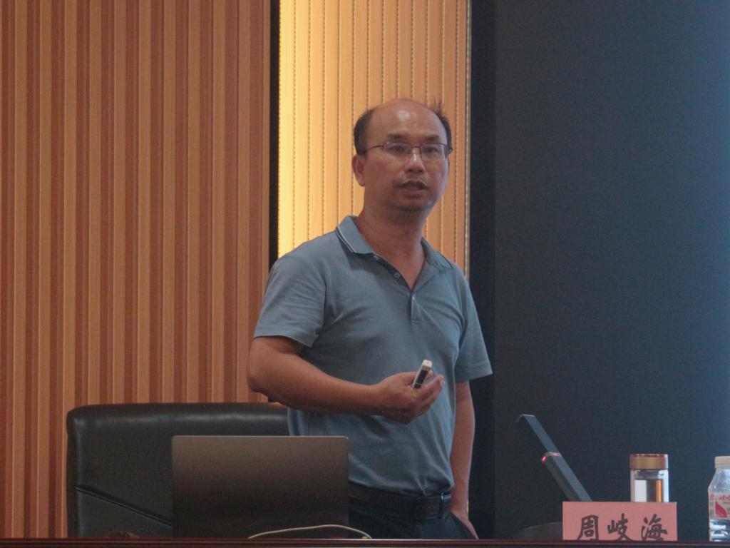 会上,周岐海教授针对国家自然科学基金申报项目介绍其相关经验,分别就国家自然科学基金的内容、基金申报前的准备、撰写申请书、项目申报注意事项这四个部分进行详细介绍。周教授指出,科研项目竞争激烈,国家自然科学基金评估项目应重在突破创新思维,侧重于基础理论和方法,选题要紧追科学部资源领域,凝聚科学问题。