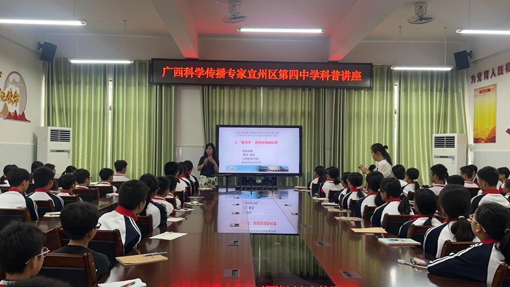 广西科学传播专家覃玥教授为河池市宜州区第四中学师生作科普知识讲座