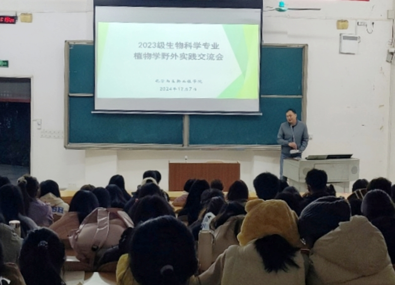 12月7日,002cc白菜资讯在格致楼负103室召开2023级、2024级生物科学专业植物学野外实践交流会,白菜资讯官网生物科学与环境工程教研室副主任谢彦军一行3人出席会议,2023级与2024级生物科学专业全体学生参加会议。
