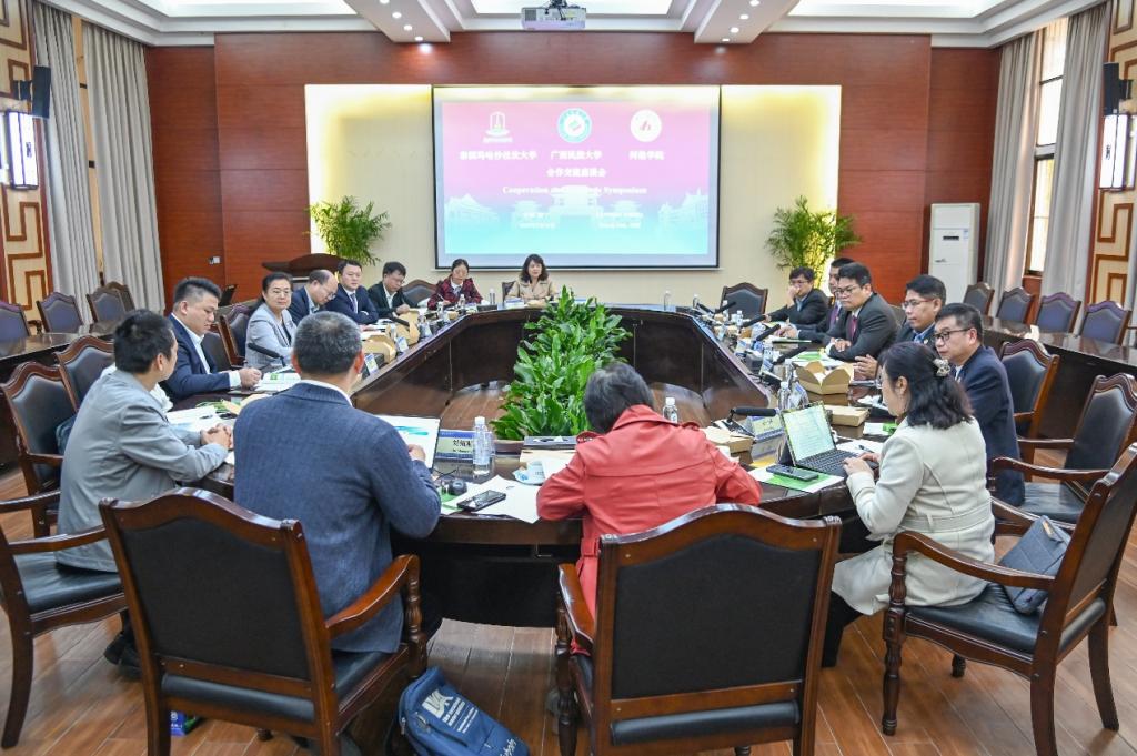 3月16日,应泰国玛哈沙拉坎大学邀请,我校副校长贺卫国率队前往广西民族大学开展友好合作洽谈。泰国玛哈沙拉坎大学校长巴育·席维莱、广西民族大学校长韦仕珍及三校相关职能部门负责人出席座谈。