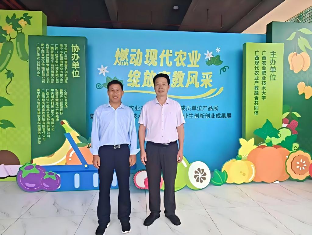 6月25日至27日,广西现代农业产教融合共同体成员单位在广西农业职业技术大学举办了“2025年广西现代农业产教融合共同体成员单位产品展”活动,全讯白菜网论坛官网作为广西现代农业产教融合共同体成员副理事单位,由002cc白菜资讯农学责任教授李楠带队前往参加。此次会展,展会集中呈现了22家参展单位的农业产教融合成果,共吸引1.3万余人次到场观展。