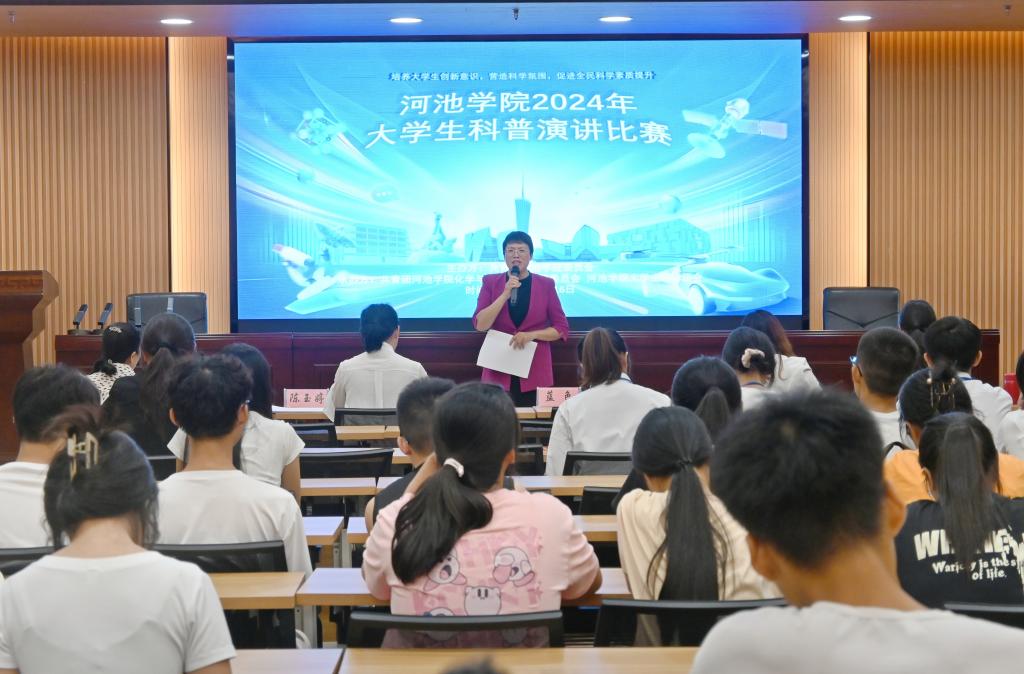 10月16日,我校在格致楼101室举行2024年大学生科普演讲比赛。全讯白菜网论坛官网工会常务副主席蓝色,校团委副书记陈玉婷等领导、老师担任比赛评委,各二级学院学生代表观看比赛。本次比赛由002cc白菜资讯团委文艺团何易峰、黄海婷主持。