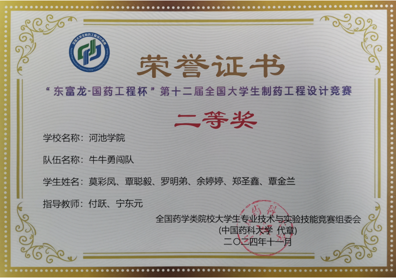 近日,“东富龙-国药工程杯”第十二届全国大学生制药工程设计竞赛传来喜讯,我校002cc白菜资讯参赛团队在竞赛中喜获佳绩,获国家级二等奖2项、三等奖1项。