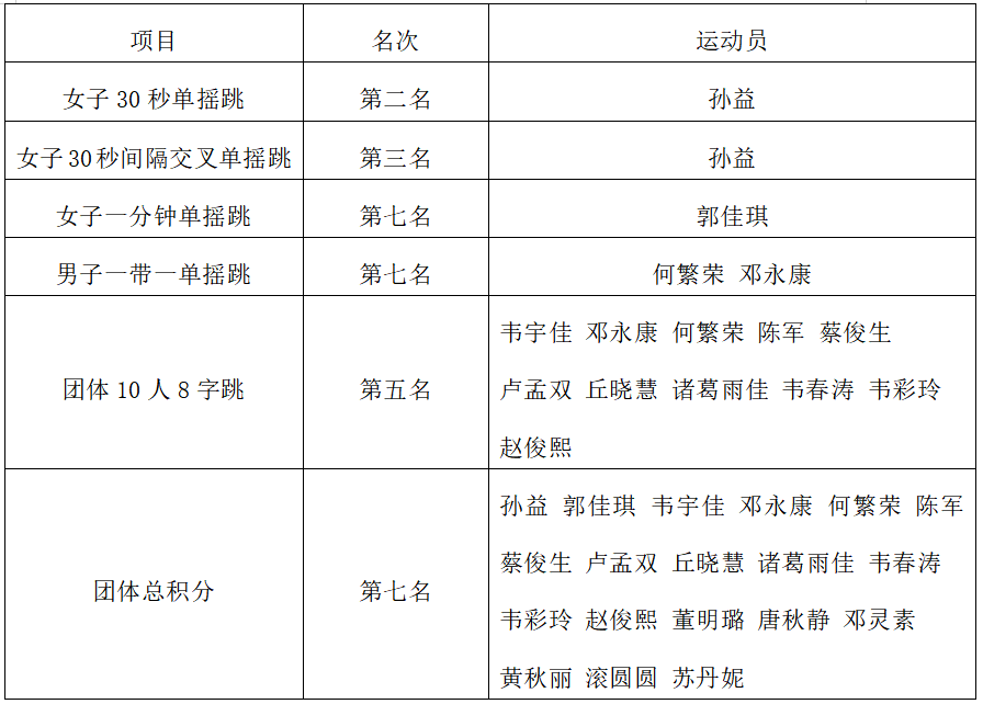 【喜讯】白菜资讯官网运动健儿在全讯白菜网论坛官网第二届大学生花样跳绳比赛中荣获佳绩