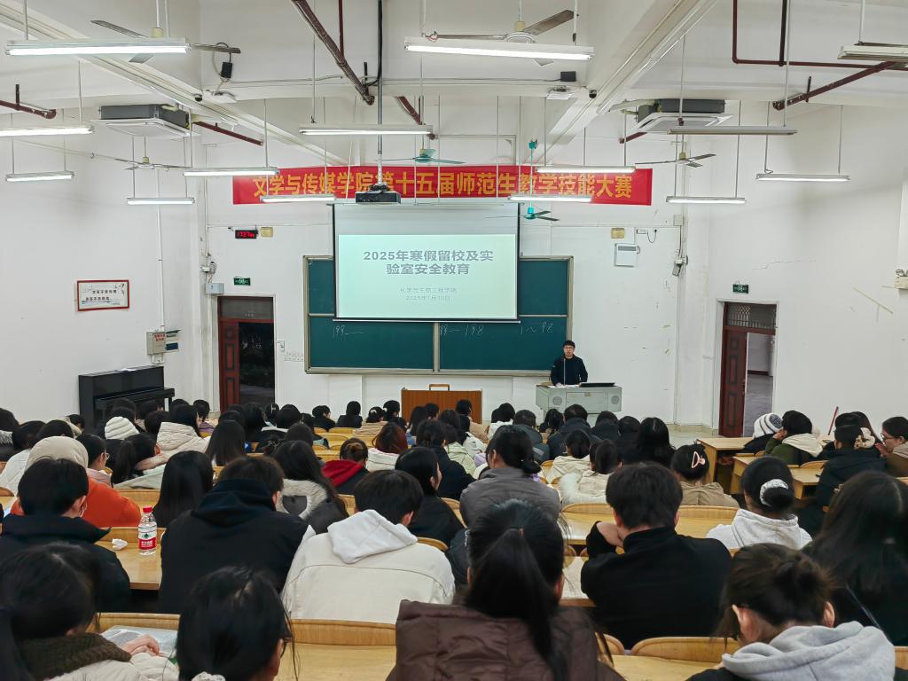 为进一步加强寒假期间留校学生的安全管理,1月10日,002cc白菜资讯在格致楼负103室召开2025年寒假留校及实验室安全教育会议。002cc白菜资讯党委副书记韦正出席会议,寒假留校全体学生参加本次会议。