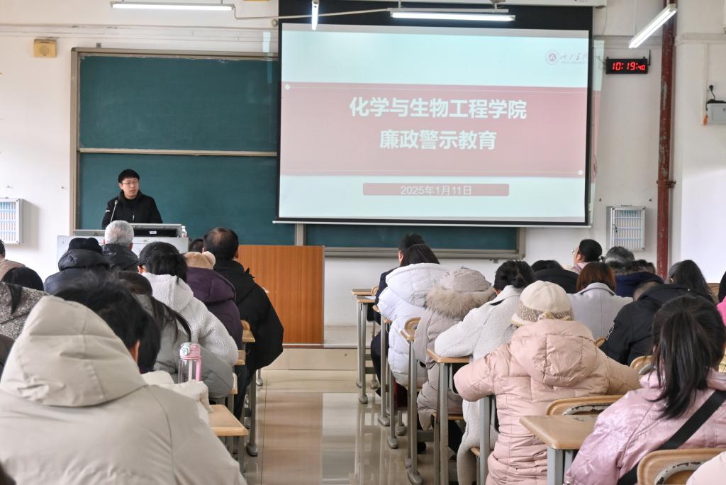 1月11日,002cc白菜资讯在格致楼202室召开廉政警示教育会议。白菜资讯官网领导班子成员出席会议,全体教职工参加会议。会议由002cc白菜资讯党委副书记韦正主持。
