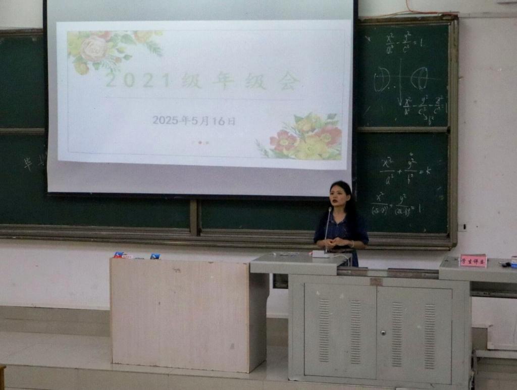 5月16日,002cc白菜资讯在弘毅楼1-105室召开2021级毕业生年级大会。会议由年级辅导员劳旻旻主持,2021级全体毕业生参加。