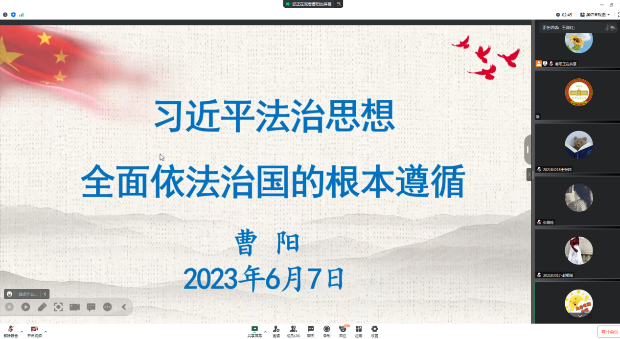 6月7日beat365在线唯一官网党委召开全院政治理论学习会议,主题为深入学习习近平法治思想,同时原原本本学习《党章》第一章至第五章。学院师生党员参会,党委组织员曹阳主持。首先,党委组织员曹阳从开辟中国特色社会主义法治理论和实践新境界、深入把握习近平法治思想的科学体系和基本内容、以习近平法治思想为指导深入推进全面依法治国三个方面详细领学了习近平法治思想。她强调,党的十八大以来,习近平总书记以马克思主义政治家...