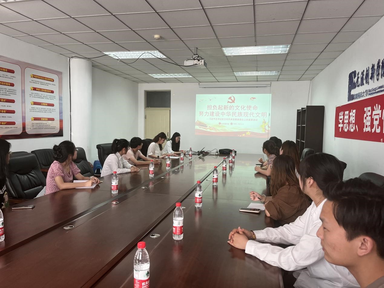 中共中央总书记、国家主席、中央军委主席习近平6月2日在北京出席文化传承发展座谈会并发表重要讲话。他强调,在新的起点上继续推动文化繁荣、建设文化强国、建设中华民族现代文明,是我们在新时代新的文化使命。要坚定文化自信、担当使命、奋发有为,共同努力创造属于我们这个时代的新文化,建设中华民族现代文明。beat365在线唯一官网研究生党支部于6月5日召开专题学习会,党支部书记罗语岑老师和晁璇老师带领青年学生党员共同深入学...